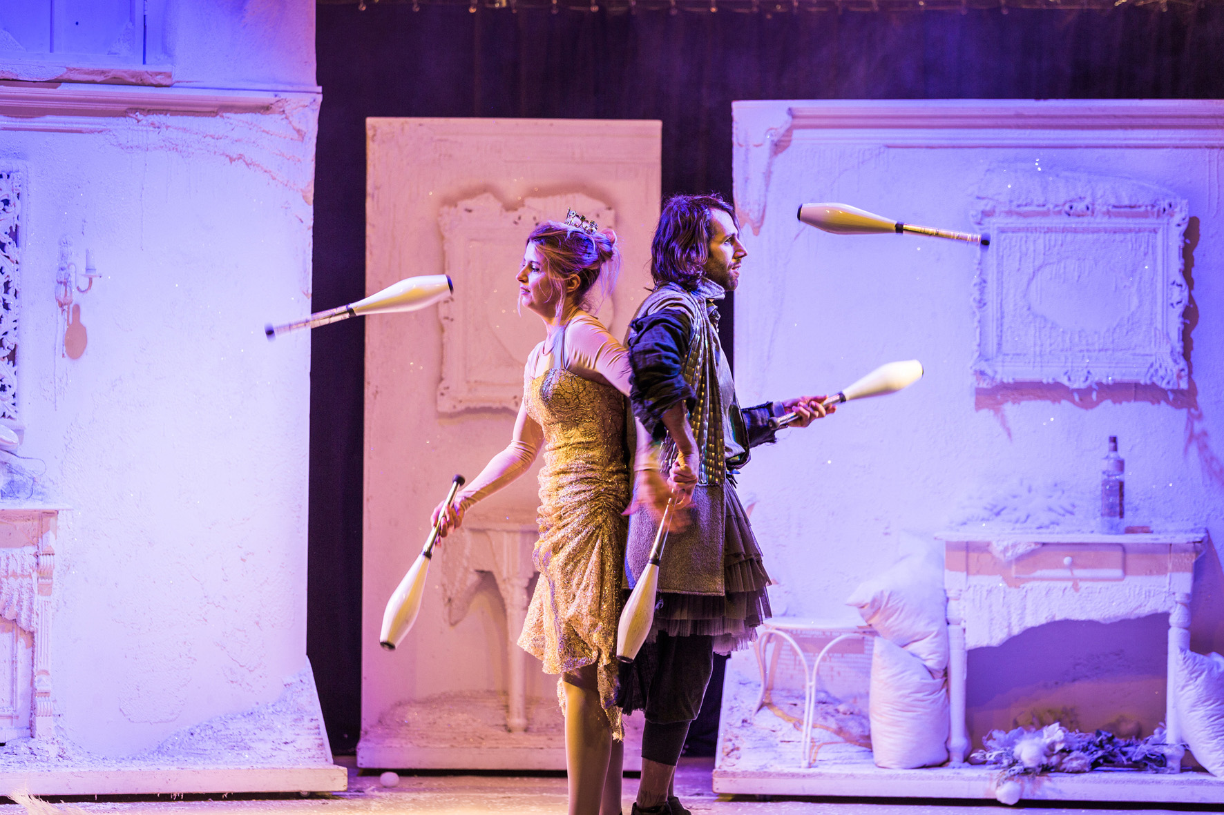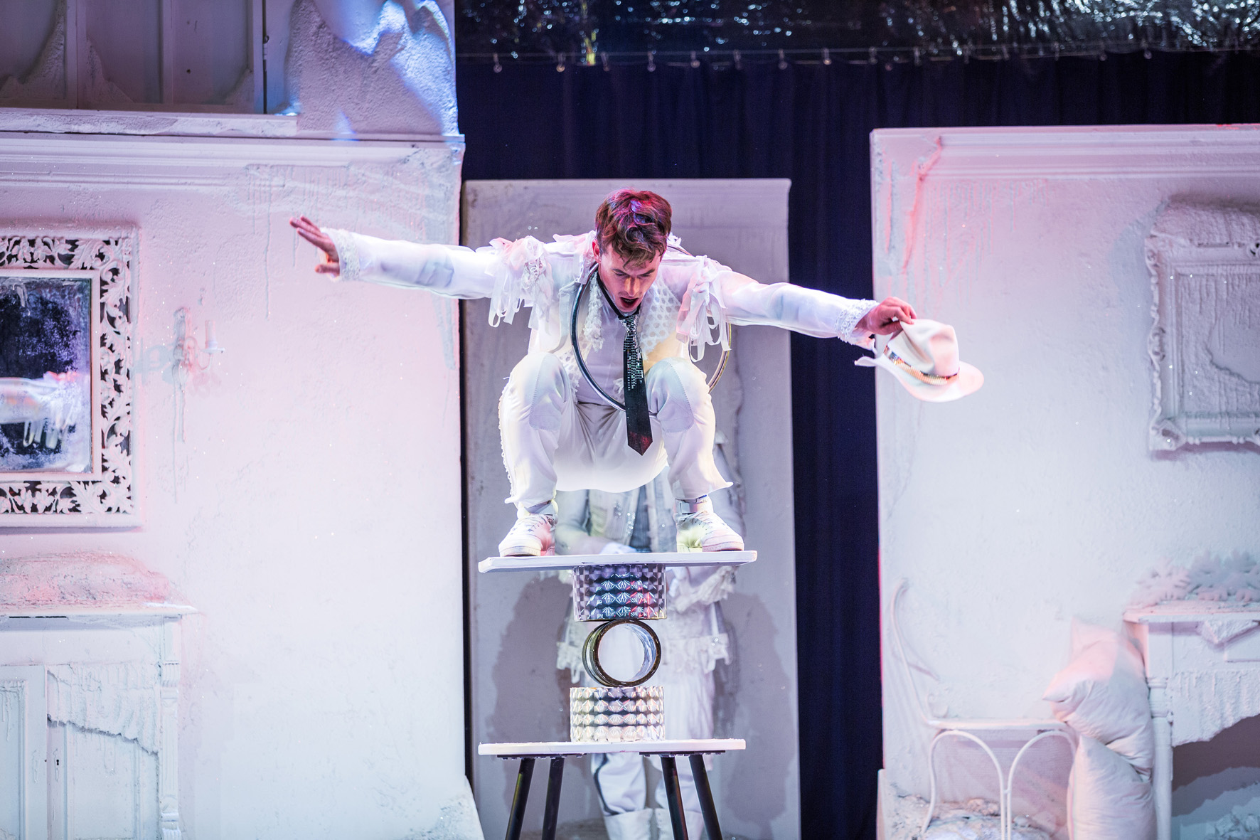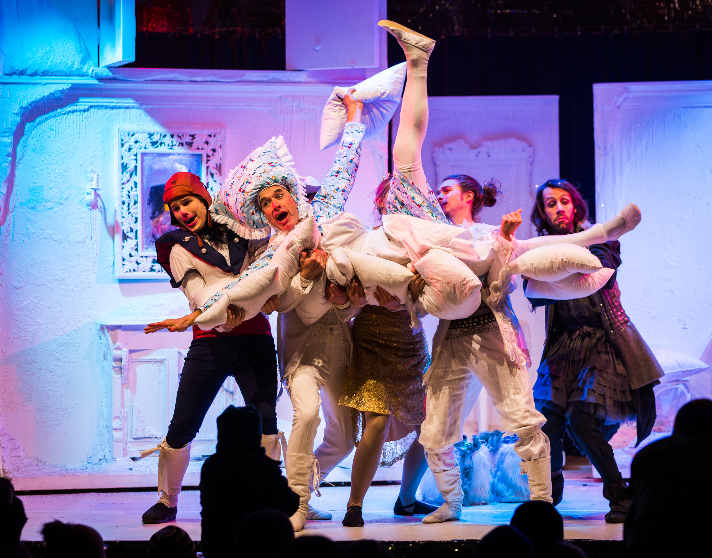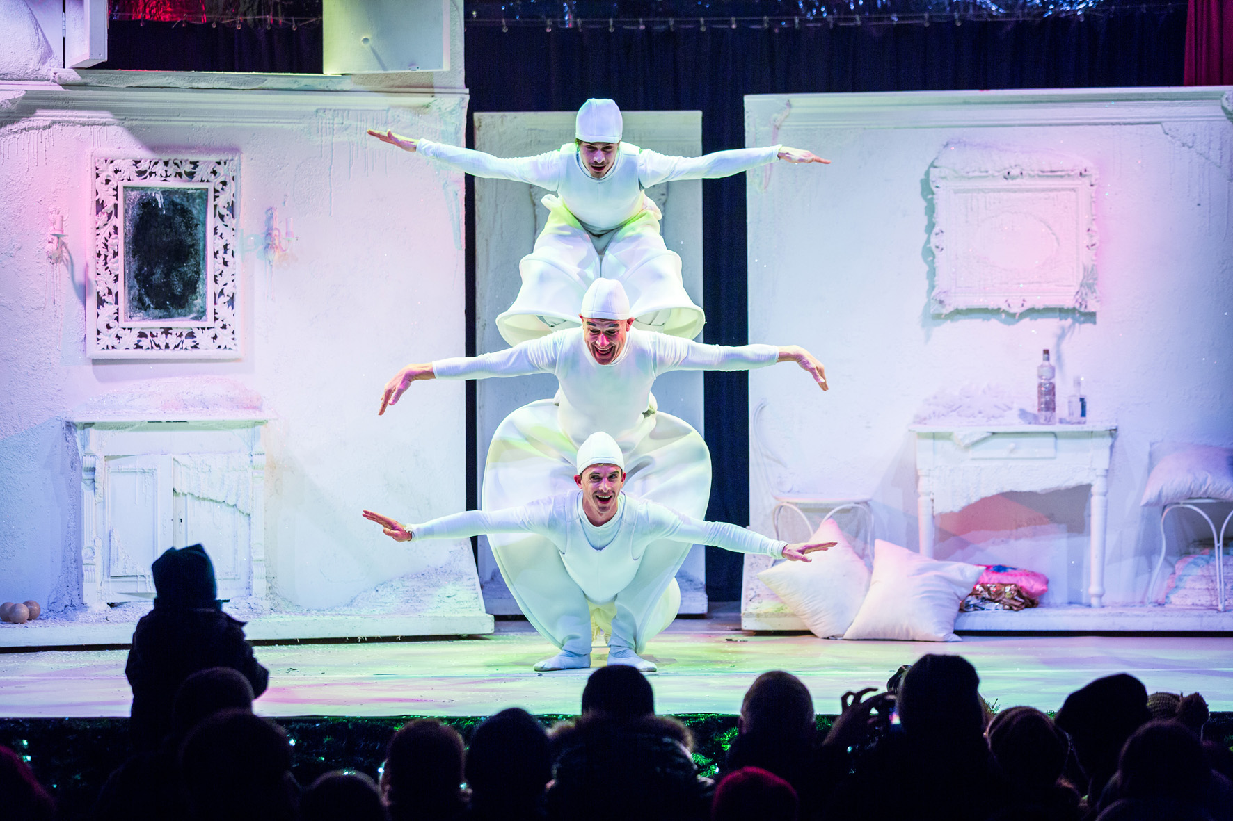Frau Holle lässt es schneien und schon geht die fulminante Schlittenfahrt los! In dem Artistik Showprogramm Holle, Holle… verstricken sich Pechmariechen und Goldmariechen, jonglierend mit Bällen und Keulen und vergessen ganz das Kissen auszuschütteln. Drei charmante Schneeflocken turnen graziös eine exellente Partnerakrobatik. Der Hahn entpuppt sich als stolzer, buttercremetortebackender Comedian. Der Eisritter vollführt eine coole Diabolodressur und sogar eine Luftprinzessin schwebt in die Manege. Ganz zu schweigen von feinster Rola-Bola-Artistik. Auch das Publikum trägt seinen Teil bei in dem Artistik Showprogramm Holle, Holle… Die Artistokraten halten noch weitere märchenhafte Showprogramme parat, z.B. das akrobatische Märchen Schneewittchen!