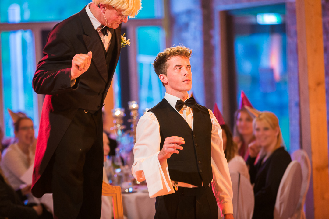 Varieteprogramm, Comedy Kellner direkt am Tisch und Exquisit dinieren – sowieso. Noch schöner, wenn der Oberkellner Artist ist und die Kaltmamsell eher eine Kultmamsell. DIE ARTISTOKRATEN versüßen Ihr Diner und verwandeln es ins Tischvarieté. Mit Livemusik, Stepptanz, Akrobatik und vor allem mit viel Vergnügen. Lassen Sie sich festlich empfangen und vom Comedy Kellner Martin van Bracht zu Tisch geleiten. Die Künstler zeigen, dass sie nicht nur als Ihr Servicepersonal Spitze sind. Sondern auch in den verschiedensten Varietedisziplinen auf höchstem Niveau agieren. DIE ARTISTOKRATEN in kleiner Formation, genau abgestimmt auf Spielort, Diner und vor allem auf SIE!